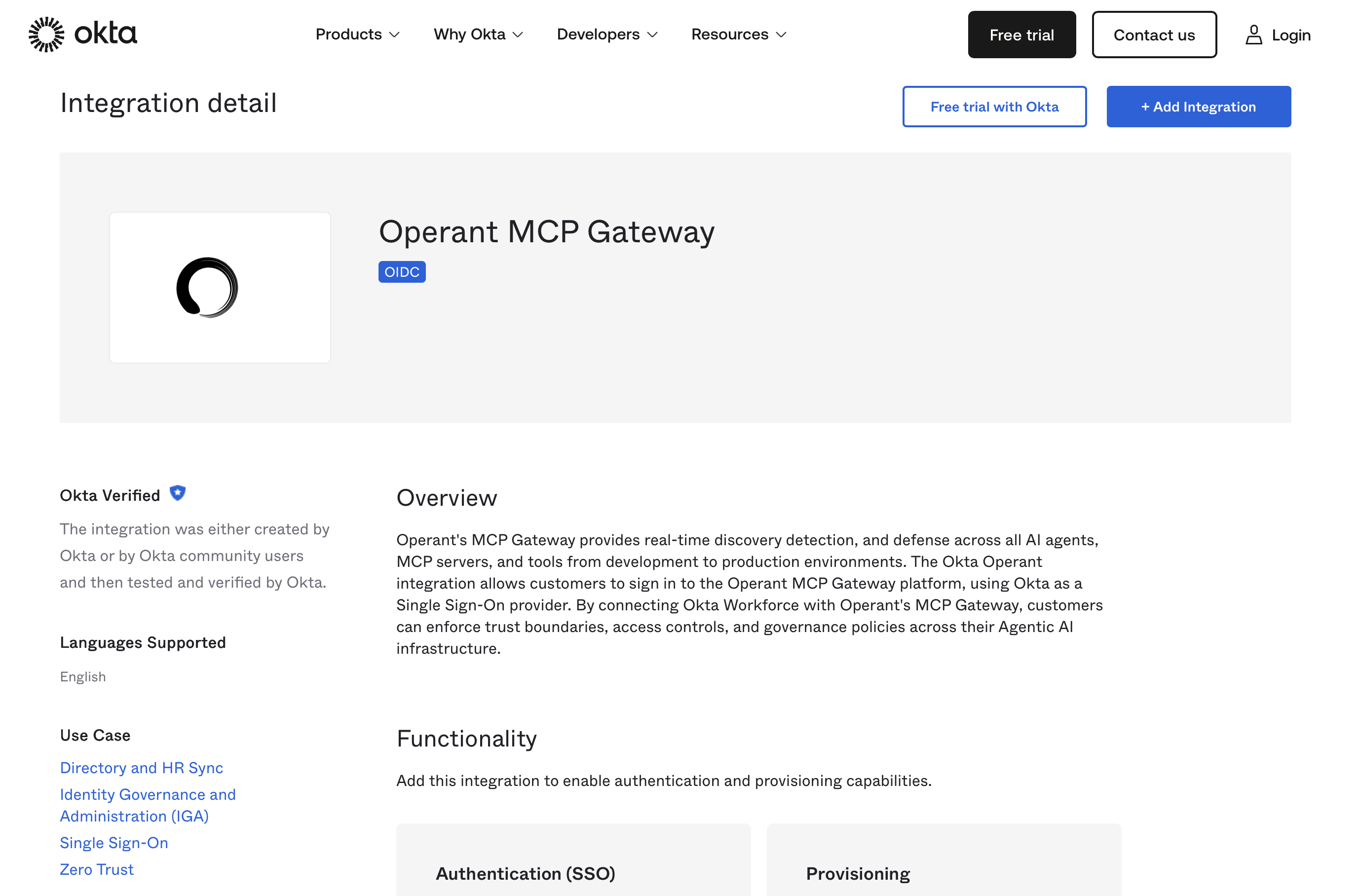 Find Operant AI in the Okta Integration Network → Operant MCP Gateway on OIN